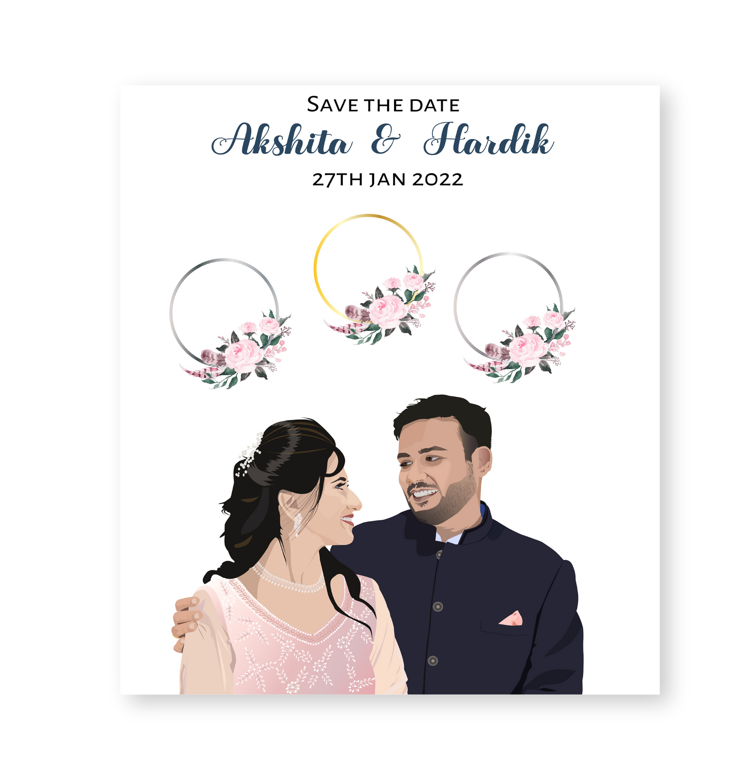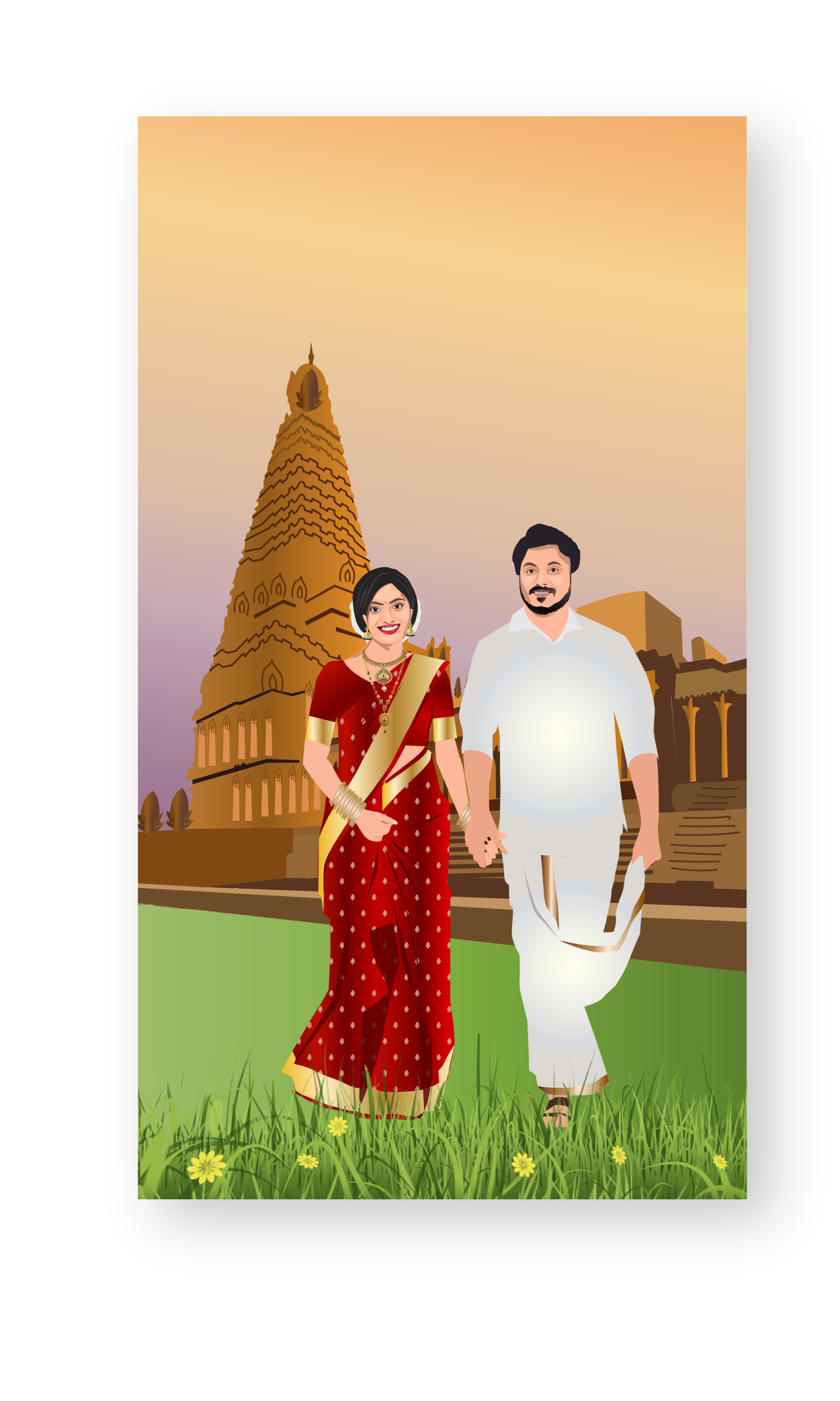 Design your unique caricature wedding e-invite on our website. Personalize every detail...